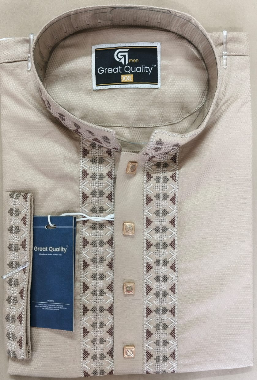 Design : Beautiful brown & grey embroidery along the placket and collar for a sophisticated traditional look