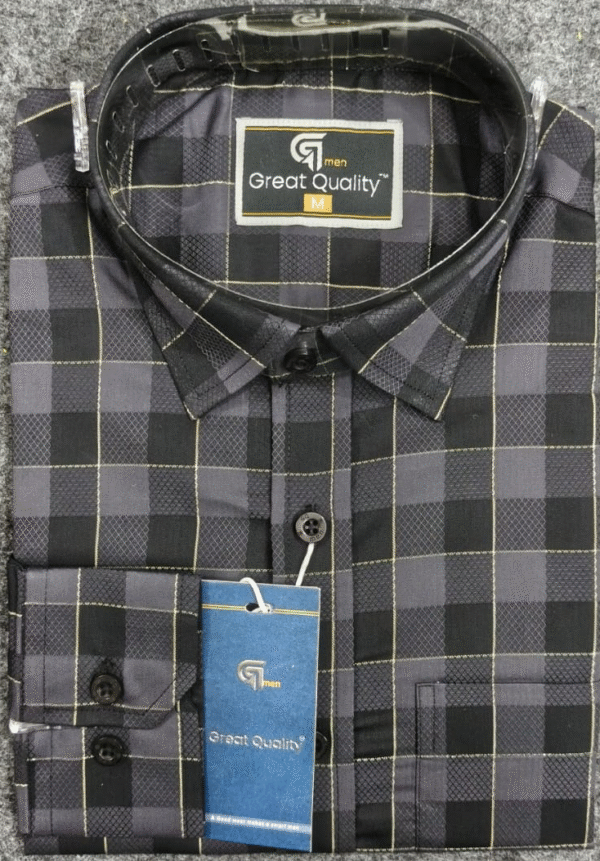Add a bold touch to your style with the Elite Black & Grey Checked Full Sleeve Shirt for Men. Made from 100% breathable cotton with durable stitching and fade-resistant color, perfect for both casual and formal wear.