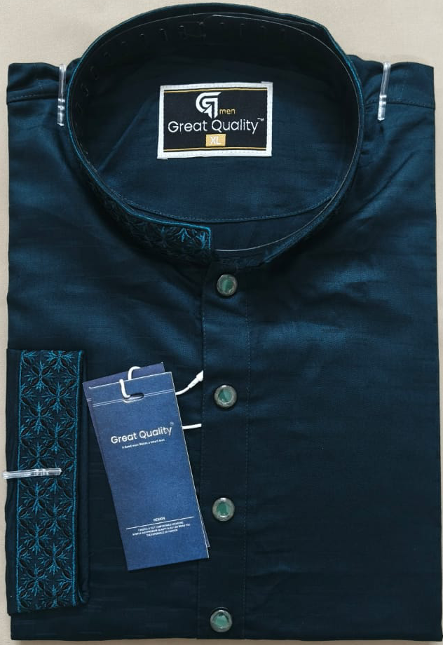 Design: Elegant embroidery on collar & cuffs
